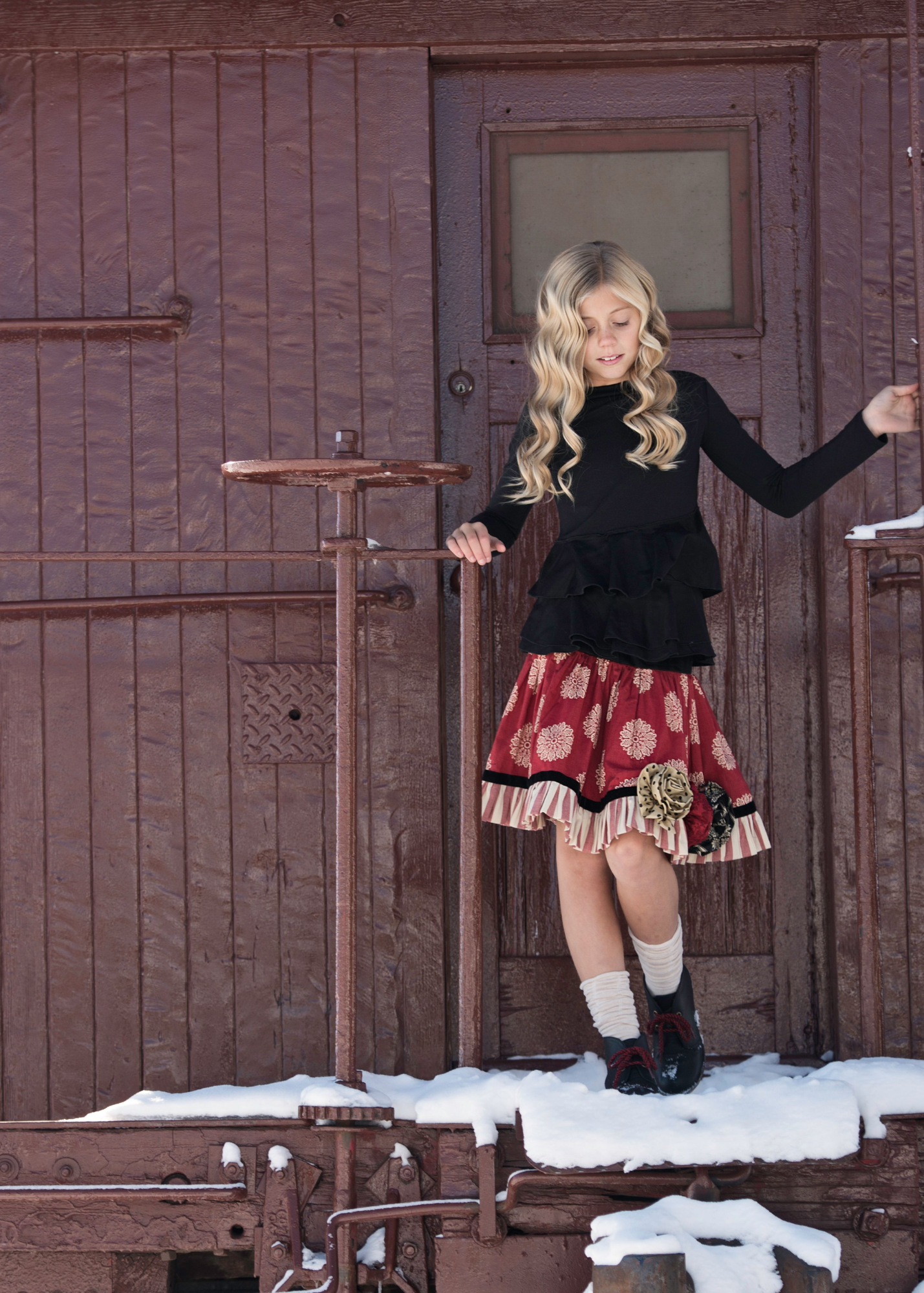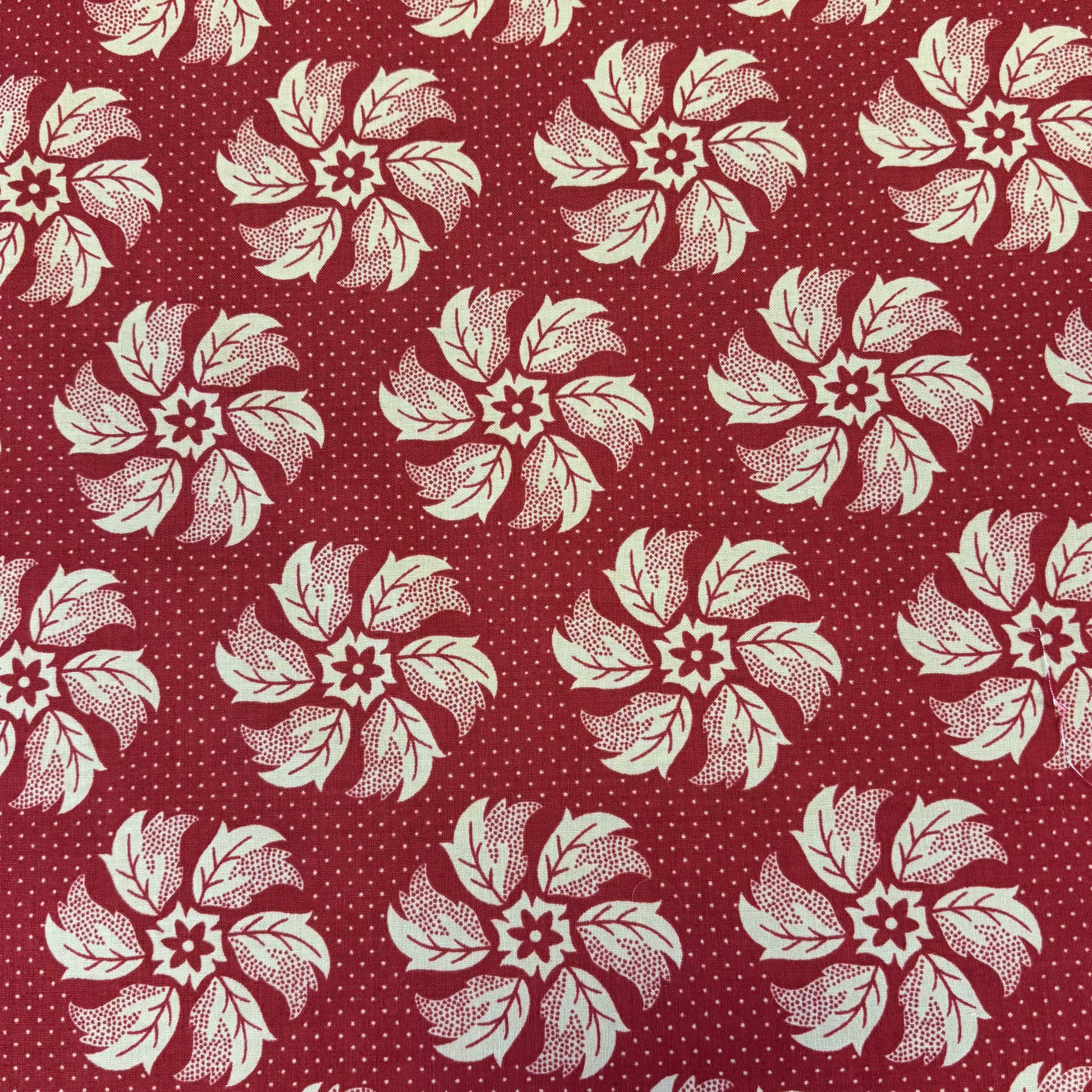This is a beautiful red fabric with cream flower pinwheels on it. So cute for skirts, dresses, quilts, or bags.